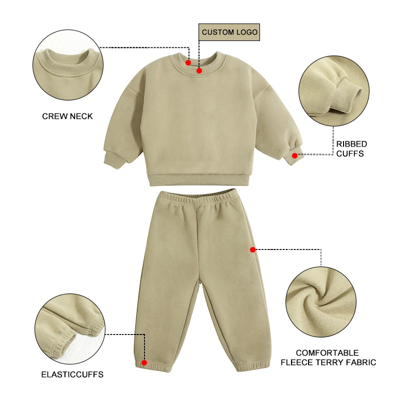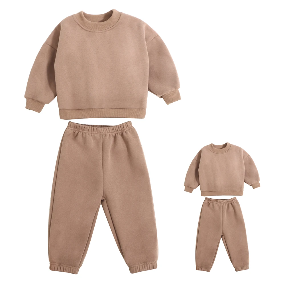 Custom Logo Fashion Large Sizes Winter Tracksuit Crew Neck Fleece Sweatshirt and Sweatpants Parent-child Matching Set